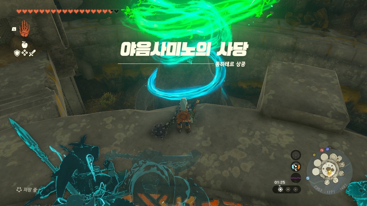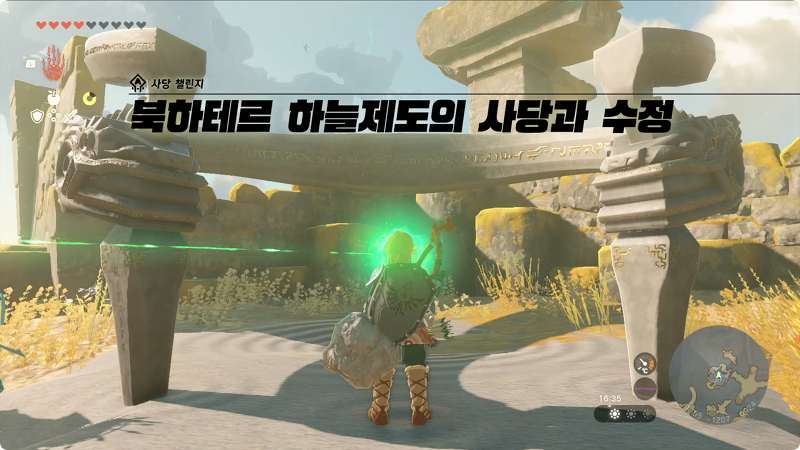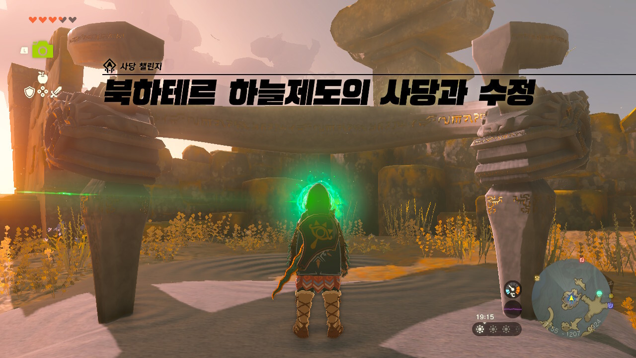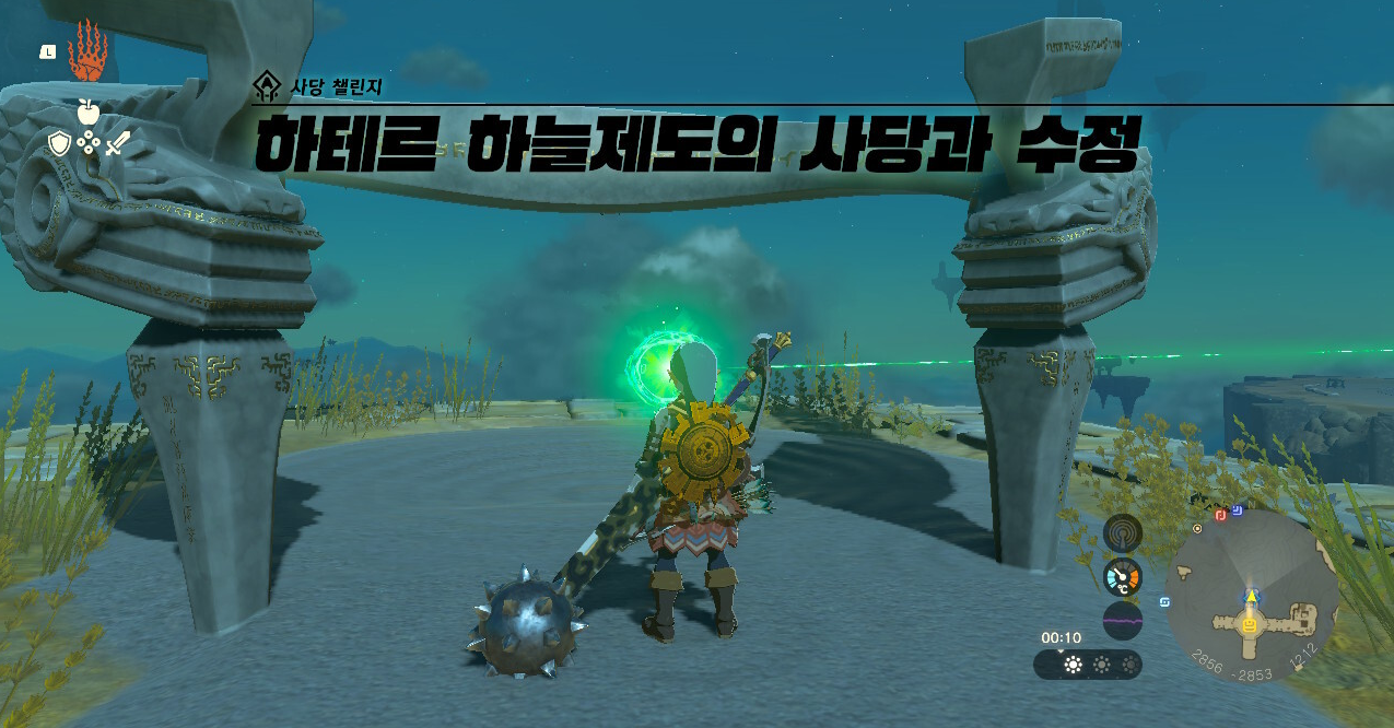 사당 위치 사하스라 평원 조망대 '죠시우의 사당'으로 워프 사당 챌린지 - 서하테르 하늘제도의 사당과 수정 위치가 동 떨어진 섬에 갈때는 주위에 있는 하늘섬에서 조나우 기어를 이용해 이동합시다. 진행방법 북하테르 하늘제도의 남쪽 끝으로 내려온 후, ⭐남서쪽 아래를 보면 녹색 빛을 볼 수 있습니다. 페러세일을 사용해 이동해줍니다. 튤리 스킬을 사용해 앞으로 나아가 줍니다. 섬에 도착한 후 ⭐남쪽 방향으로 내려다보면 빛은 ⭐섬 아래를 가리키고 있다는걸 알 수 있습니다. 빛을 따라 아래로 내려가보면 ⭐덩굴들이 보입니다. 무기를 사용해 덩굴을 자르며 안쪽으로 이동해줍니다. 덩굴 내부에서 수정과 조나우 기어들을 얻을 수 있게 됩니다. 기어들을 사용해 비행기를 만들고 그 위에 수정을 올려 초록색 빛을 따라 이동합니..
